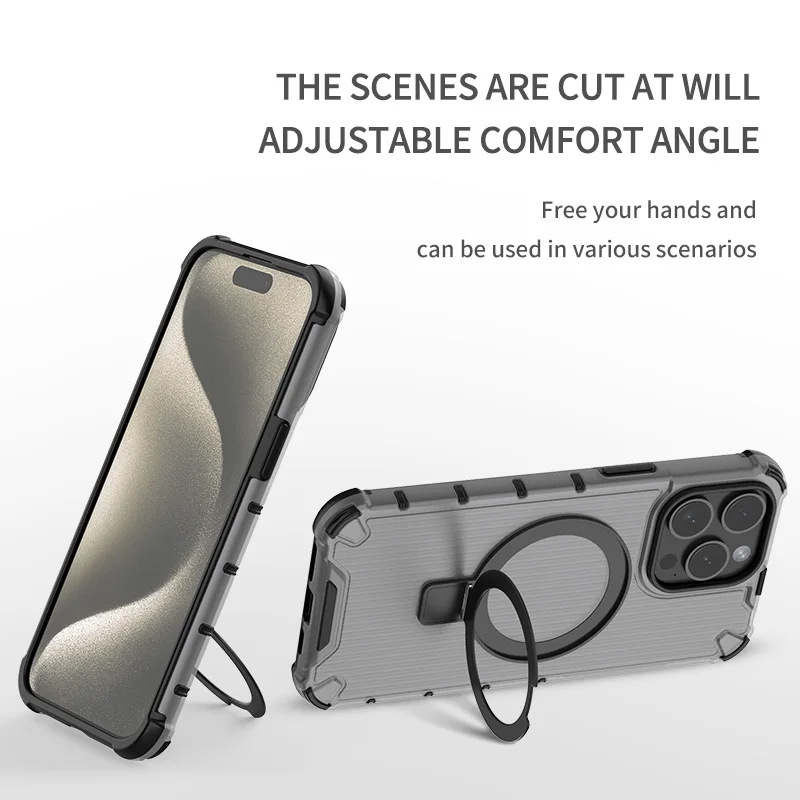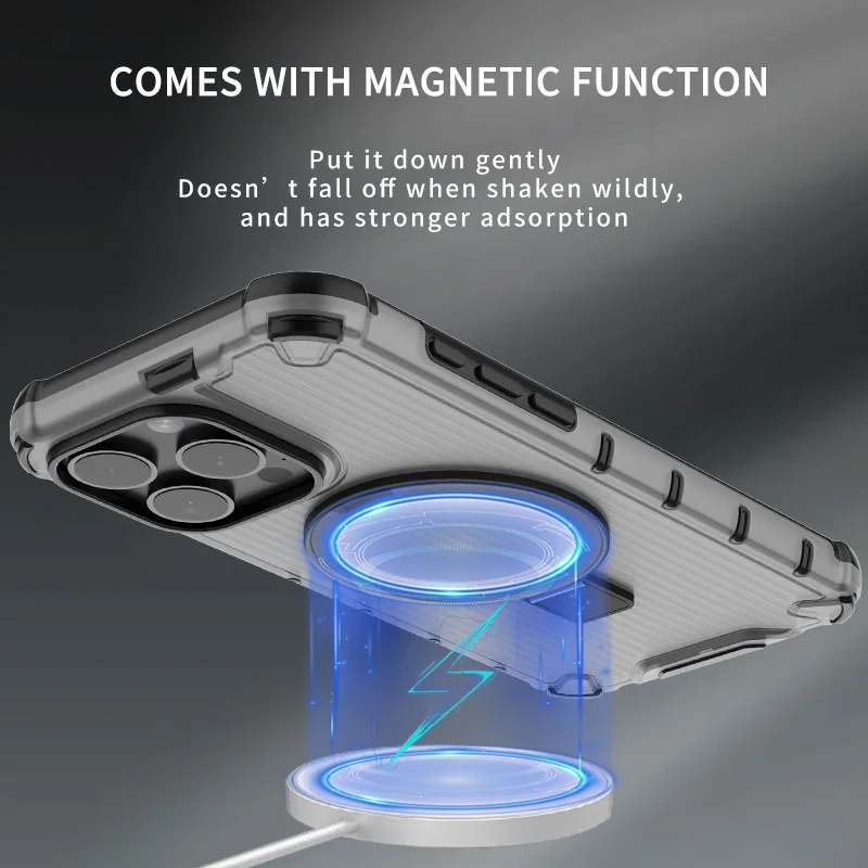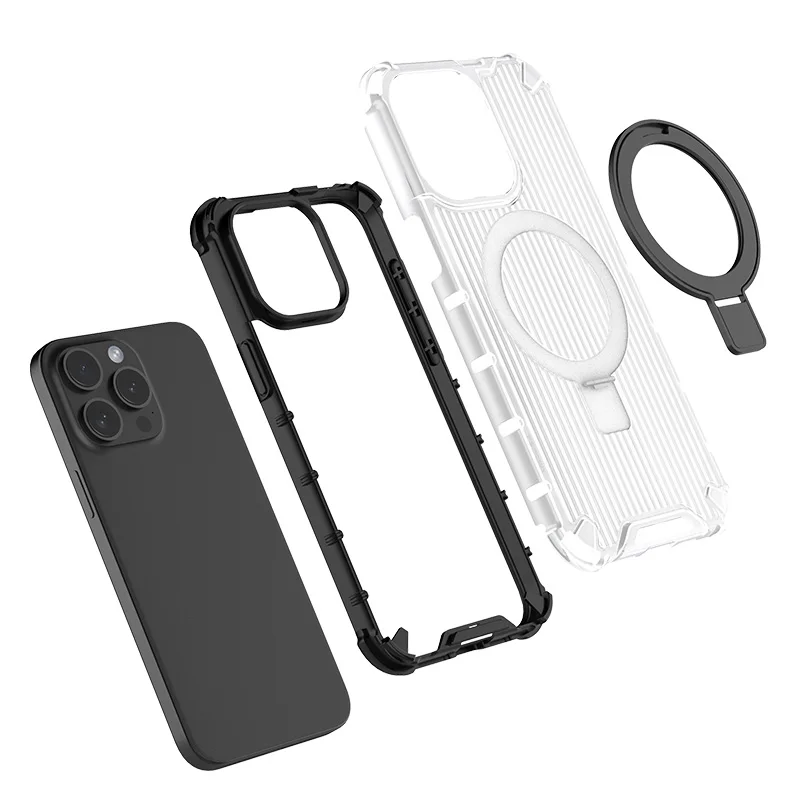 iPhone 15/14/13/12/11 Clear Armor Case with Metal Ring | Shockproof & Magnetic